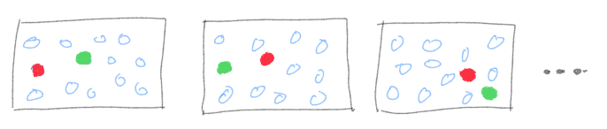 Consider this box filled with molecules of a gas. Even without any fancy theories, we know that we always only see it spread throughout the box. If we saw that all of the gas collected itself in some corner, we would consider it as bizarre or spooky! More on that and its connection to entropy will be in subsequent posts. For now, let’s focus on how do we make this observation quantitative. Let us assume that all the atoms or molecules of the gas are identical— nothing distinguishes them from each other. So if we swap two of them, the “state” of the system doesn’t change.